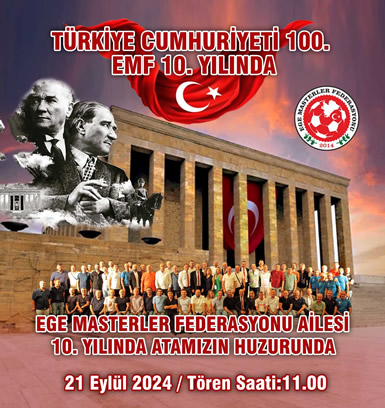 AYVALIK MASTERLER DERNEÐÝ, BALÇOVA OLÝMPÝYAT MASTERLER SK, BUCA GEDÝZ MASTERLER SK, EVKA 5 SK, KARÞIYAKA KARAGÖL ELÝT SK DERNEÐÝ, EMF Yönetim Kurulumuz, derneklerimizin/kulüplerimizin baþvuru dilekçelerini incelemesi sonucunda; Ege Masterler Federasyonu’na üyeliklerinin/turnuvalarýna katýlýmlarýnýn kabulünde sakýnca görülmediðini tespit ederek, üyelik/turnuva katýlým taleplerini kabul etmiþtir. Derneklerimize/kulüplerimize ve de EMF ailesine hayýrlý olmasýný temenni ederiz. Üye derneklerimize saygýyla duyurulur.